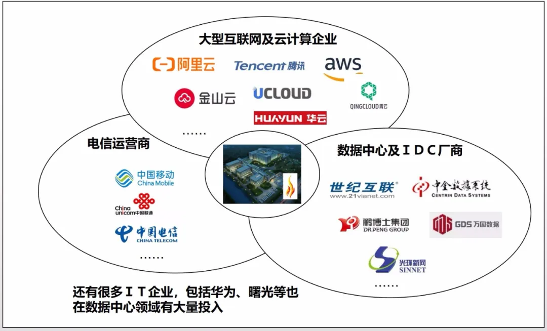 其次,從數(shù)據(jù)中心廠商的角度來分析。俗話說,春江水暖鴨先知。作為數(shù)據(jù)中心的建設(shè)者、擁有者和運(yùn)營者,數(shù)據(jù)中心廠商對于“新基建”早就引頸以待。在這里,我們將參與“新基建”數(shù)據(jù)中心建設(shè)的廠商粗略地劃分成三大類:電信運(yùn)營商、專業(yè)的數(shù)據(jù)中心和IDC廠商,以及互聯(lián)網(wǎng)廠商。